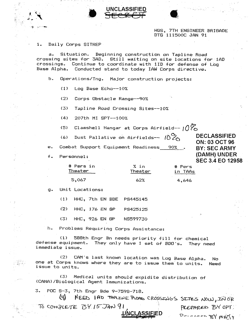 Document 41 f:/Week-24/BX000213/SITUATION REPORTS 7TH ENG BDE 22 DEC 90- 10 APR 91/daily sitrep 7th engineer bde:11089615143325