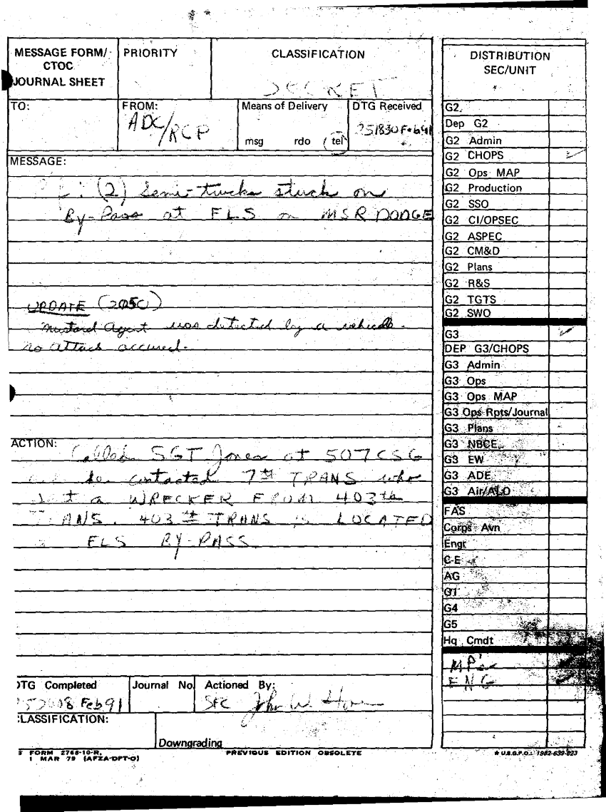 Folder Title = DUTY LOG G3 REAR 25 FEB 91