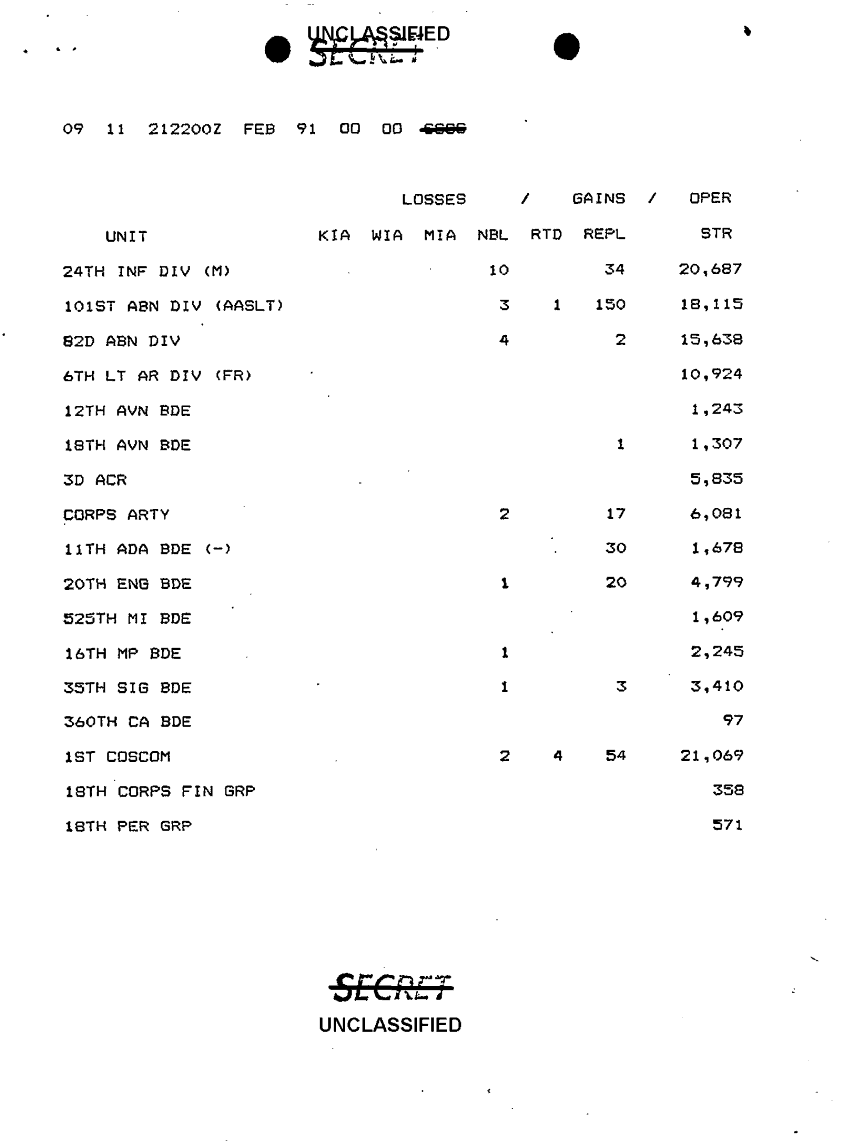 Document 11 f:/Week-10/BX000020/DUTY LOG G3 REAR XVIII ABC MAIN CP SITREPS FEB 91/message dated 21 feb 91:11229616375155