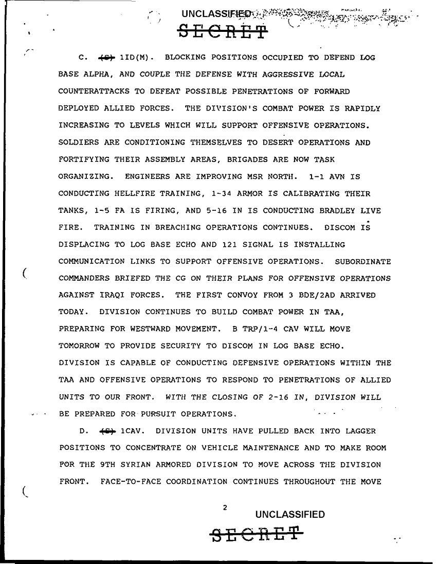 Document 13 f:/Week-43/BX000271/SPT DOC FOR DAILY STAFF JOURNAL 22 JAN 91 TACT OPS CENTER/cmdr s sitrep cbt 4 21 jan 91:12069615464147