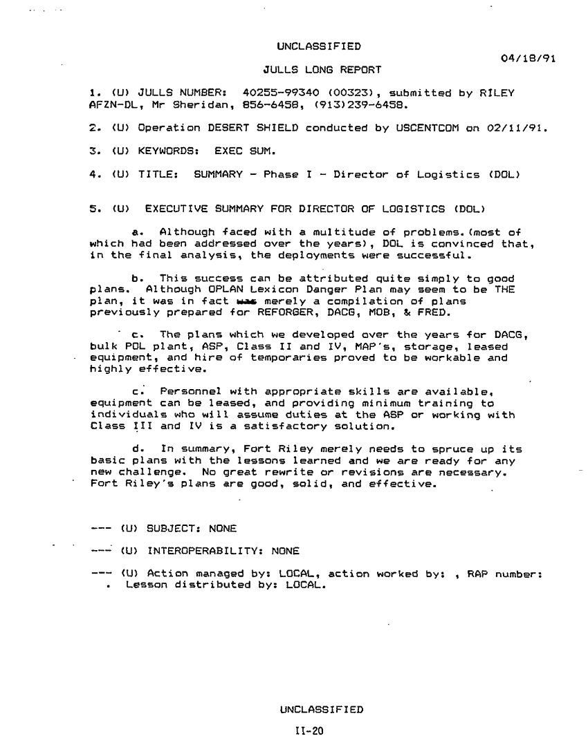 Document 517 f:/Week-26/BX001008/DESERT STORM AFTER ACTION REPORTS/special information for installation after actio:12179611150511