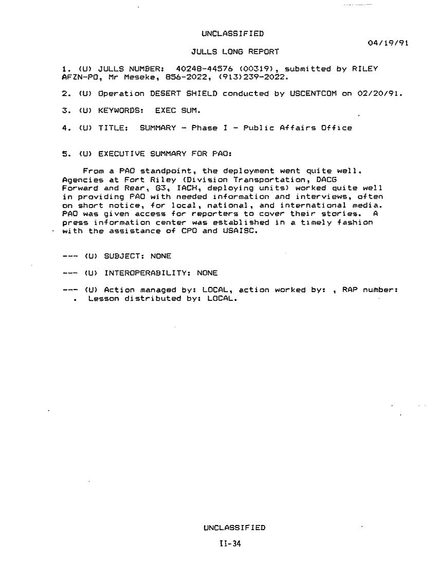 Document 517 f:/Week-26/BX001008/DESERT STORM AFTER ACTION REPORTS/special information for installation after actio:12179611150511