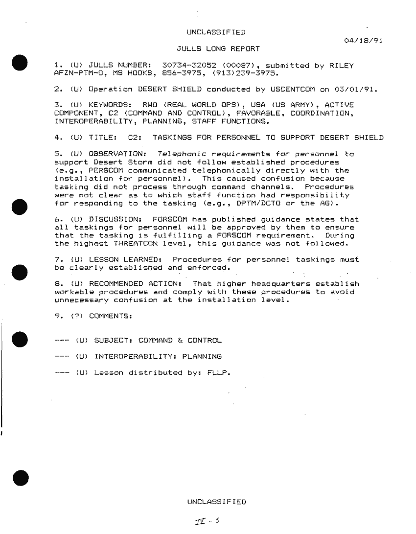 Document 517 f:/Week-26/BX001008/DESERT STORM AFTER ACTION REPORTS/special information for installation after actio:12179611150511