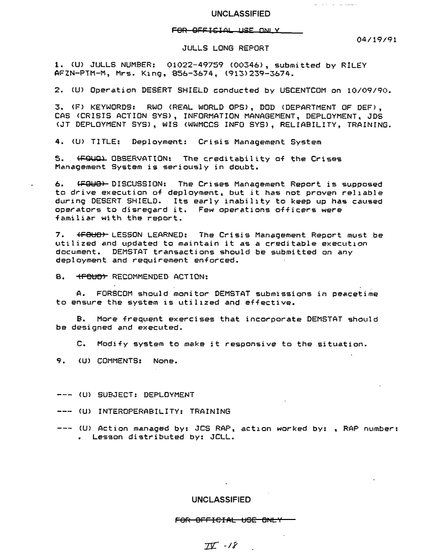 Document 517 f:/Week-26/BX001008/DESERT STORM AFTER ACTION REPORTS/special information for installation after actio:12179611150511