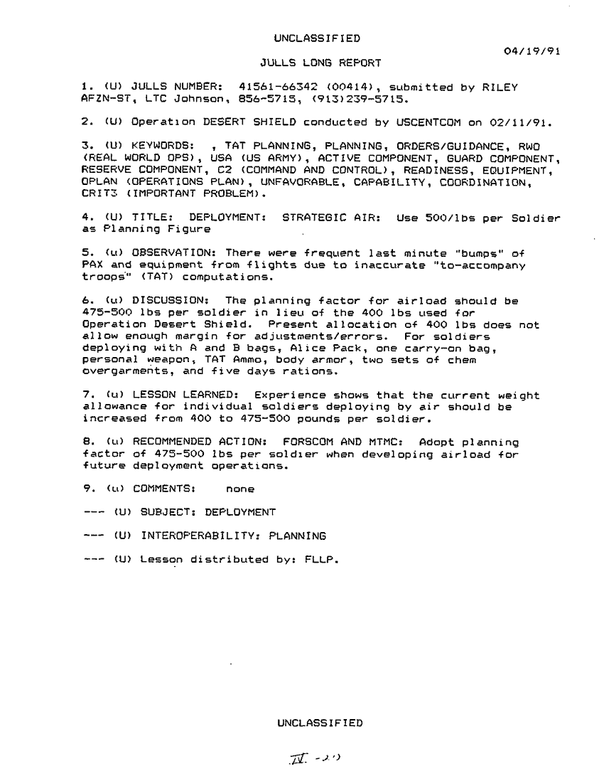 Document 517 f:/Week-26/BX001008/DESERT STORM AFTER ACTION REPORTS/special information for installation after actio:12179611150511