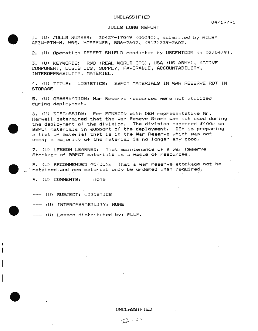 Document 517 f:/Week-26/BX001008/DESERT STORM AFTER ACTION REPORTS/special information for installation after actio:12179611150511