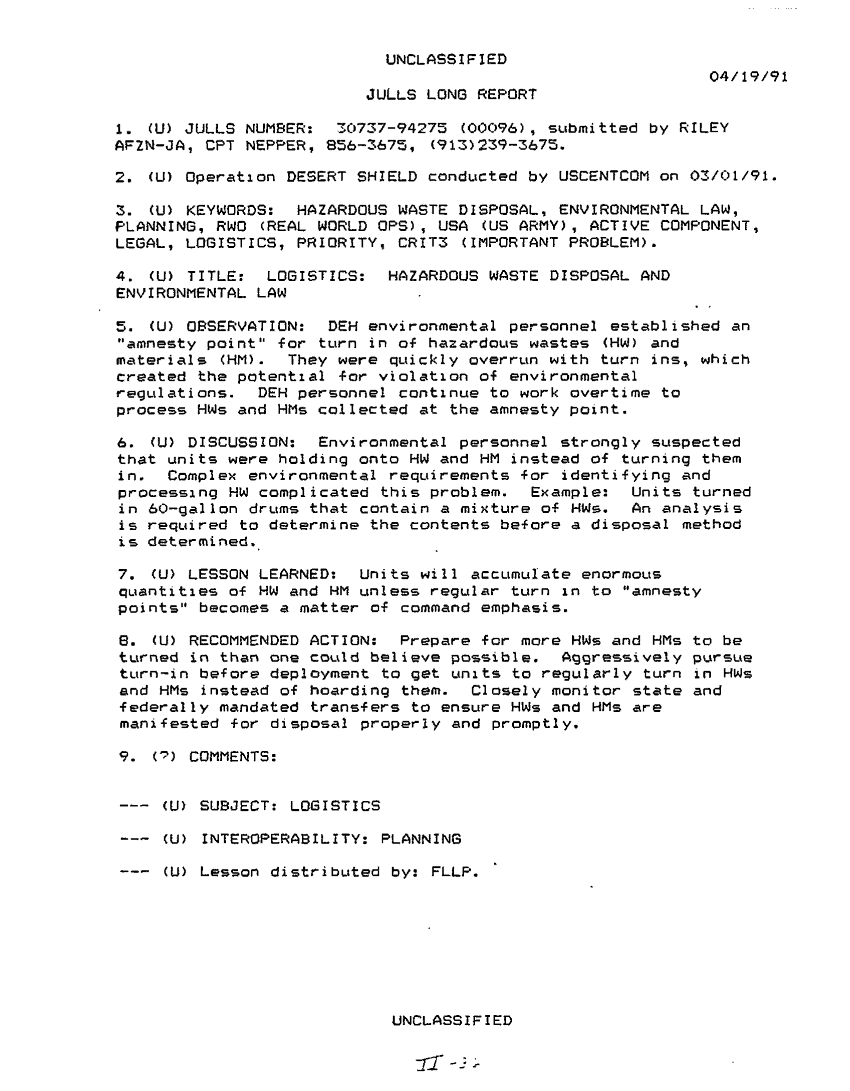 Document 517 f:/Week-26/BX001008/DESERT STORM AFTER ACTION REPORTS/special information for installation after actio:12179611150511