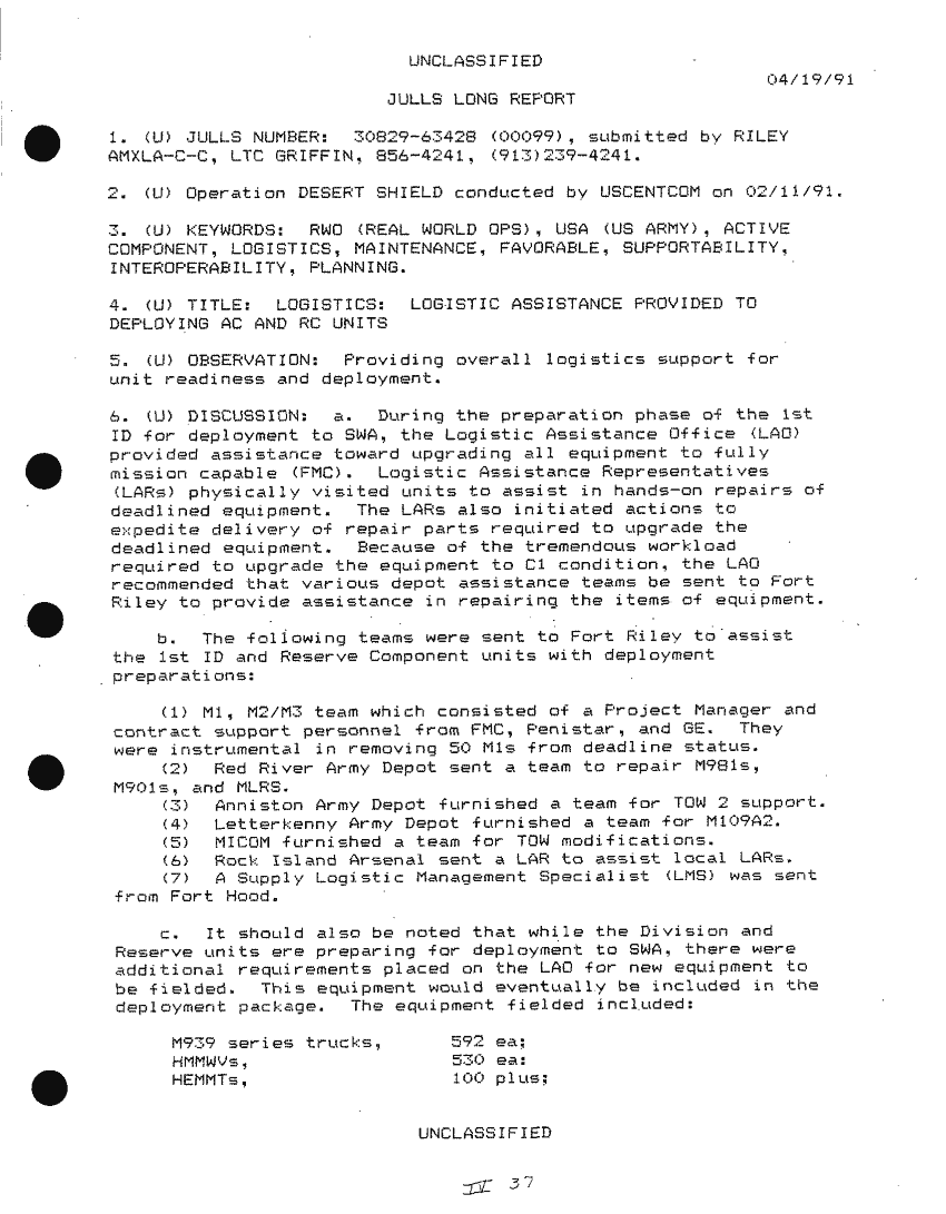 Document 517 f:/Week-26/BX001008/DESERT STORM AFTER ACTION REPORTS/special information for installation after actio:12179611150511