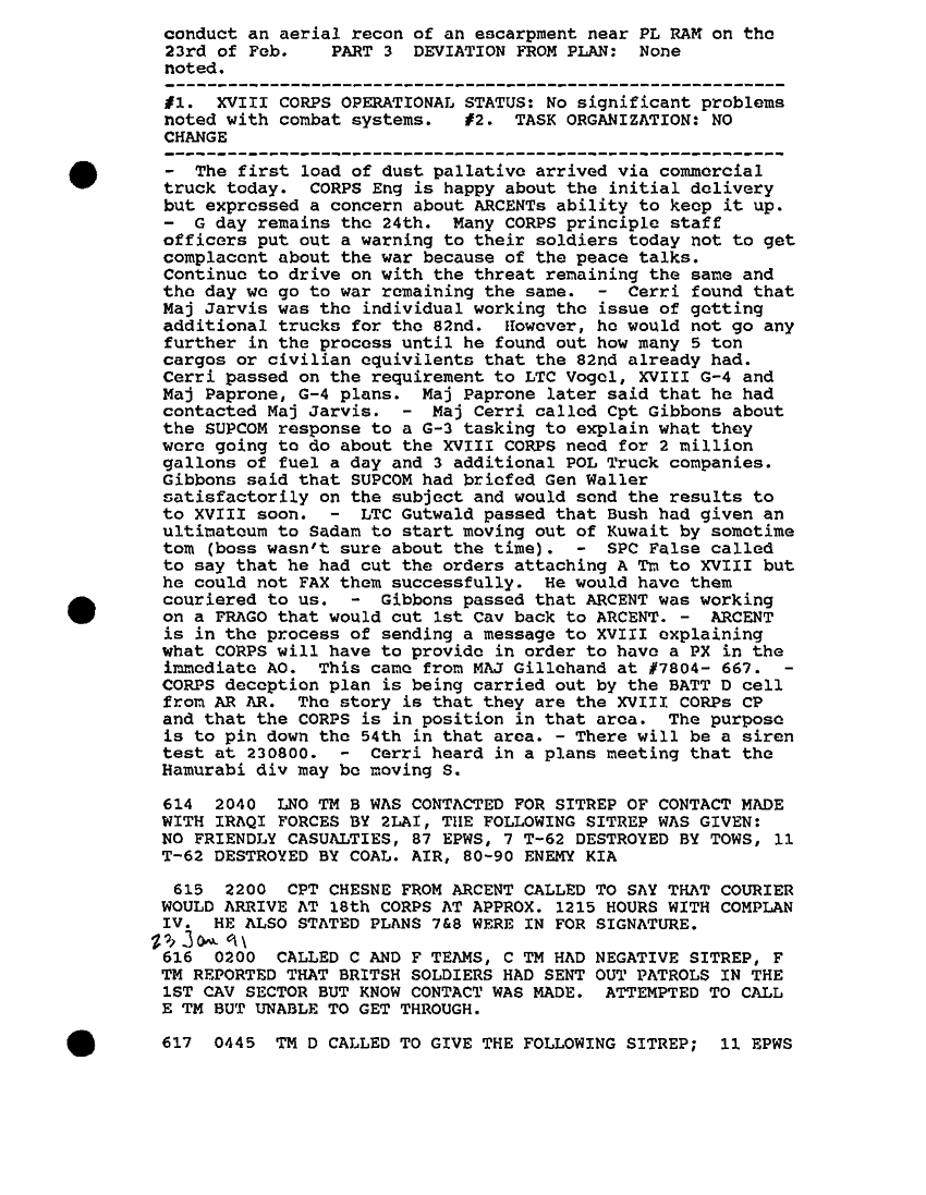 Document 57 f:/Week-30/BX000454/HISTORIANS BACKGROUND MATERIAL FILES - DAILY LOG SHEETS/daily staff journal and duty officers log:12179611150712