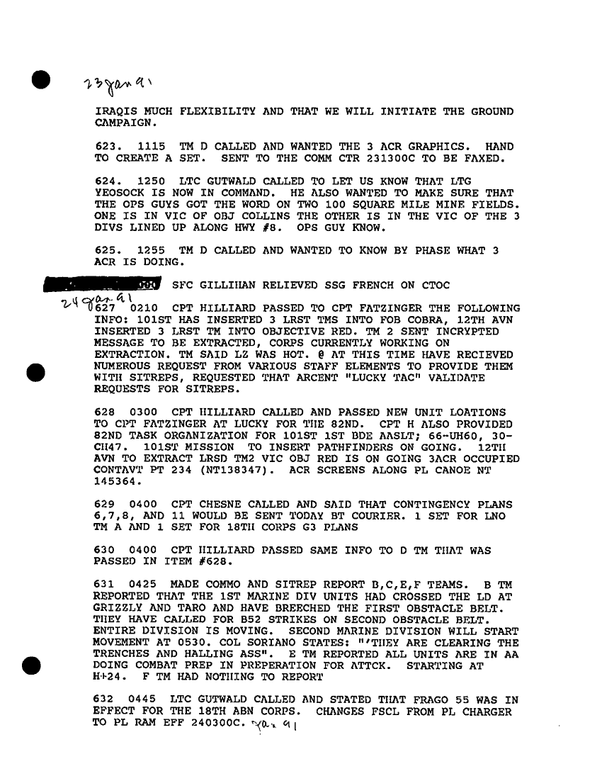 Document 57 f:/Week-30/BX000454/HISTORIANS BACKGROUND MATERIAL FILES - DAILY LOG SHEETS/daily staff journal and duty officers log:12179611150712