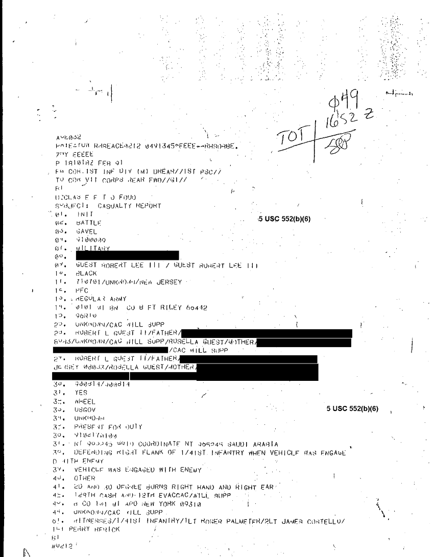 Document 78 f:/Week-26/BX001004/AWARD GUEST ROBERT L III-1/casualty report award of the purple heart:12179611151925