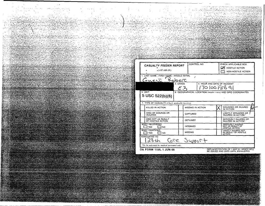 Document 78 f:/Week-26/BX001004/AWARD GUEST ROBERT L III-1/casualty report award of the purple heart:12179611151925