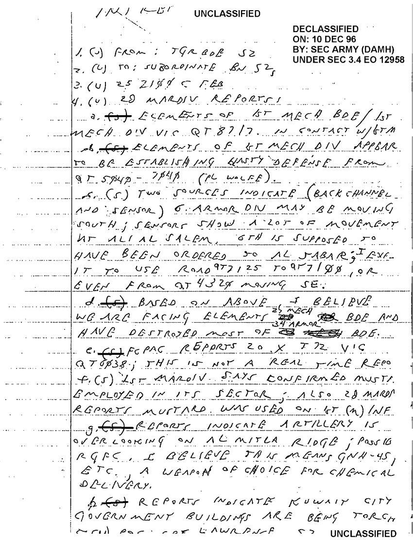 Document 2 f:/Week-28/BX001921/INTELLIGENCE SPOT REPORTS FEB 91 - 1/health related mustard gas:12179611162495
