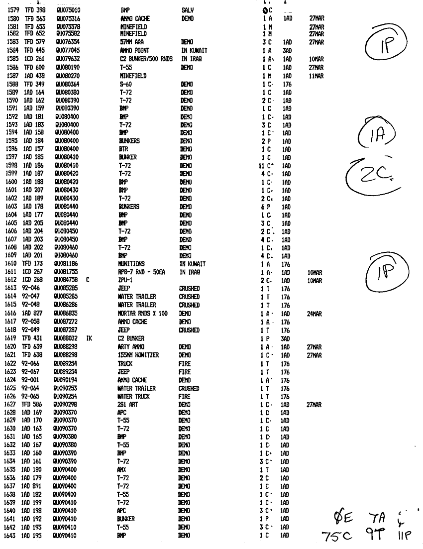 Document 49 f:/Week-24/BX000211/TASK FORCE DEMO LOG 11-13 MAR 91/executed demolitions report:12179611151116