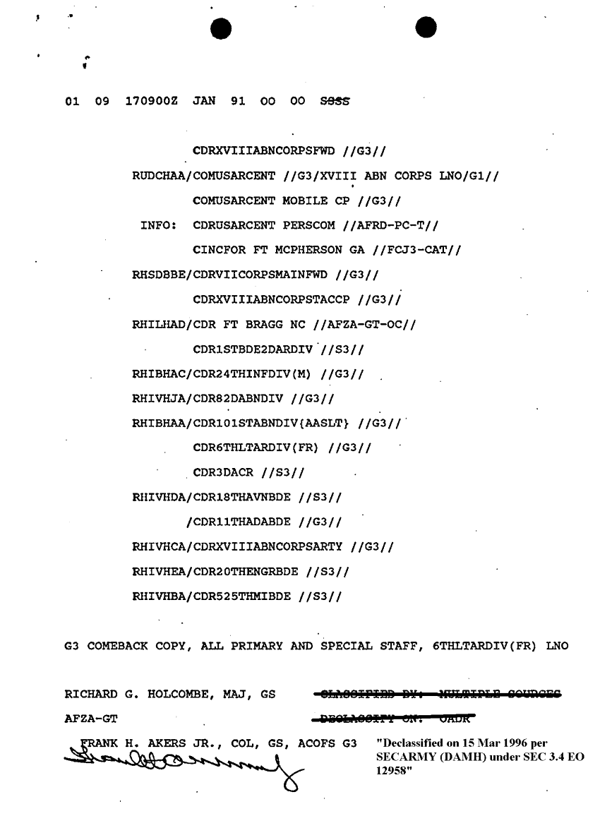 Document 9 f:/Week-10/BX000020/DUTY LOG G3 REAR XVIII ABC MAIN SITREPS CONT JAN 91/sitrep 17 jan 91:12179611154351
