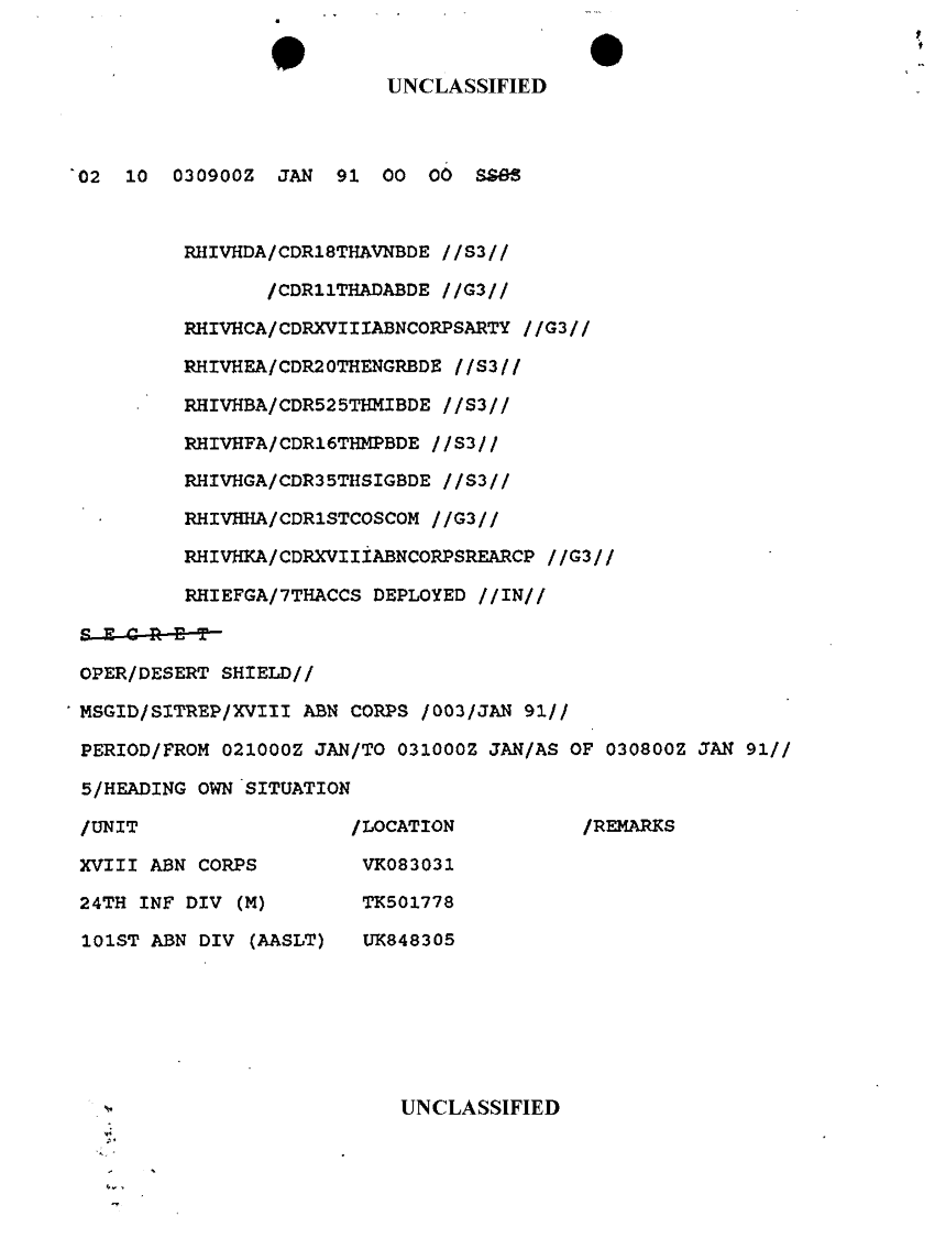 Document 10 f:/Week-10/BX000020/DUTY LOG G3 REAR XVIII ABC MAIN SITREPS JAN 91/message dated 3 jan 91:12179611154452