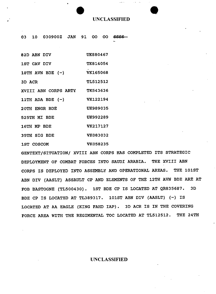 Document 10 f:/Week-10/BX000020/DUTY LOG G3 REAR XVIII ABC MAIN SITREPS JAN 91/message dated 3 jan 91:12179611154452
