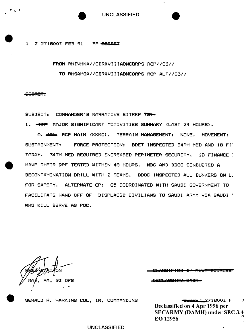 Document 2 f:/Week-10/BX000020/DUTY LOG G3 REAR OUTGOING MSG 20 FEB - 14 MAR 91/commanders narrative sitrep:12179611155664
