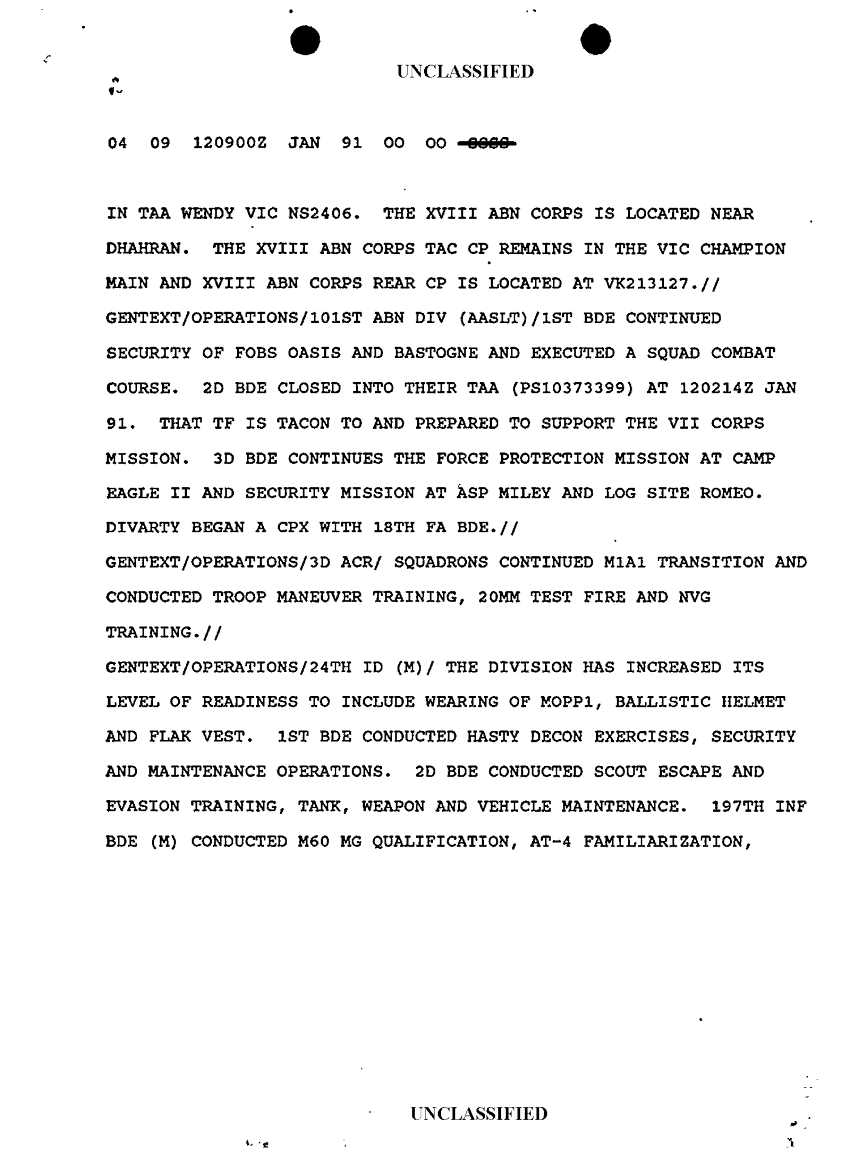 Document 9 f:/Week-10/BX000020/DUTY LOG G3 REAR XVIII ABC MAIN SITREPS JAN 91/message dated 12 jan 91:12179611160068