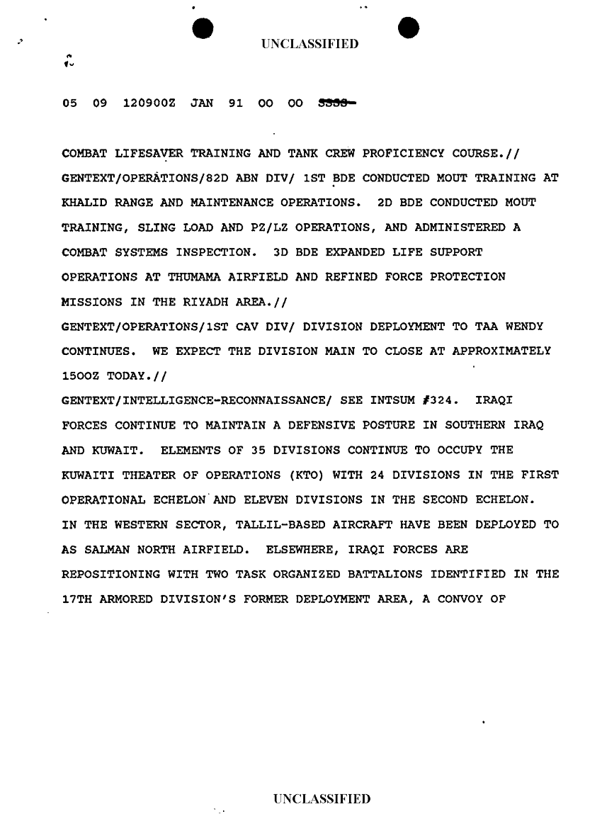 Document 9 f:/Week-10/BX000020/DUTY LOG G3 REAR XVIII ABC MAIN SITREPS JAN 91/message dated 12 jan 91:12179611160068