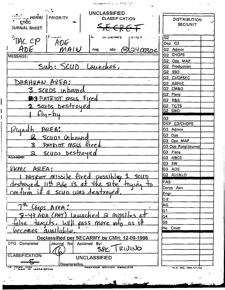 Document 25 f:/Week-12/BX000024/DUTY LOG G3 TAC CP 24 JAN 91/daily staff journal or duty officers log:12179611153137