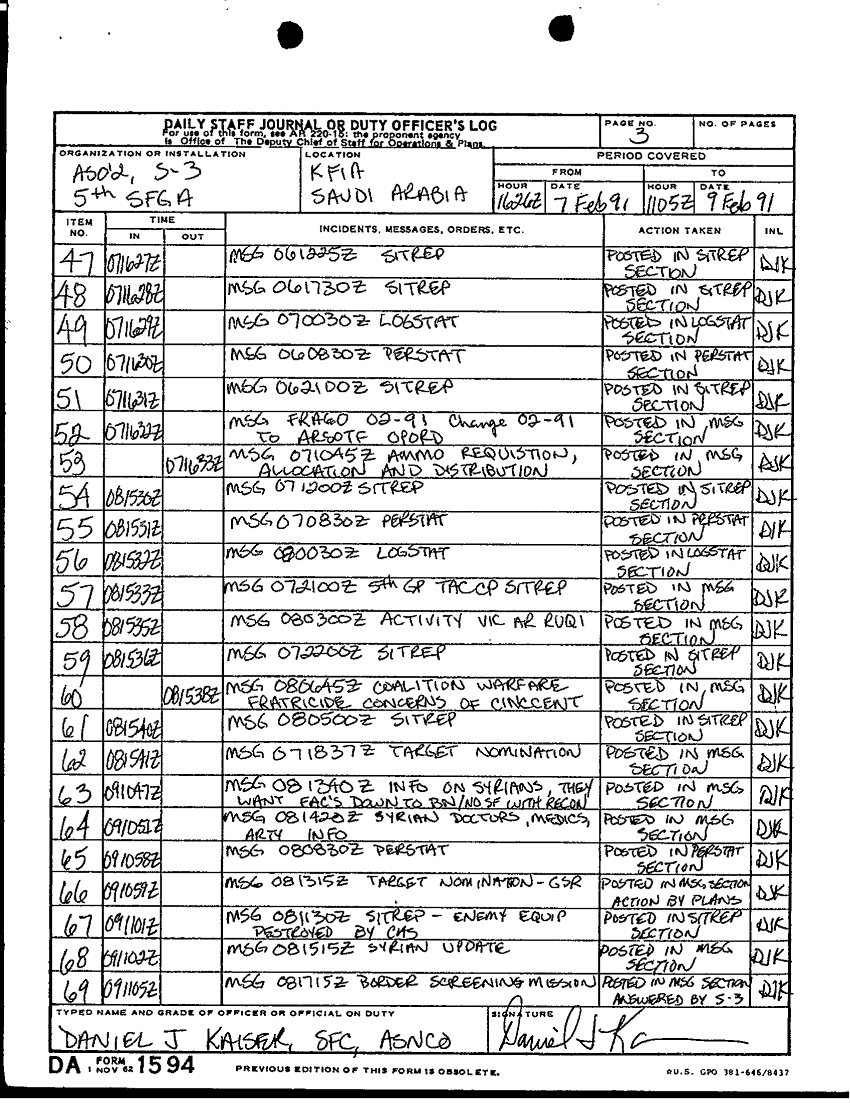 Document 10 f:/Week-46/BX004003/1-28 FEB 91 STAFF JOURNAL ASO 2 5TH SFGA KFIA/daily staff journal or duty officers log:12179611162192