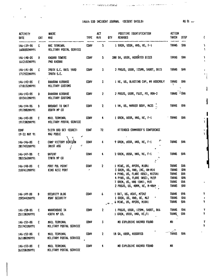 Document 5 f:/Week-46/BX005555/512TH EODCT SUBORD UNIT JOURNALS EOD INCIDENTS/eod activity and status report ods 1 31 may 91:121796111630102