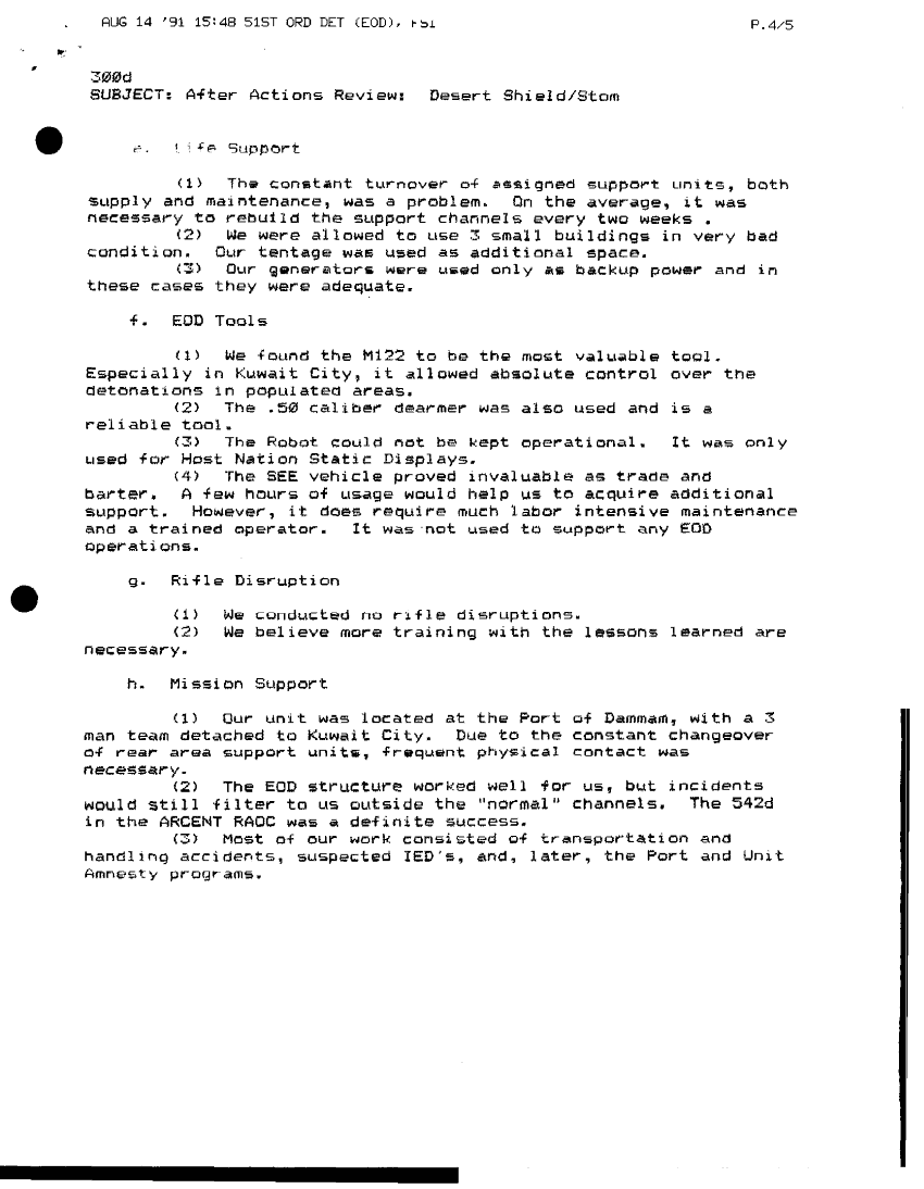 Document 28 f:/Week-42/BX005554/ARMY EOD IN DESERT STORM VOL 4 543 EOD TEAM EODCT/after action report desert shield storm:1217961114584