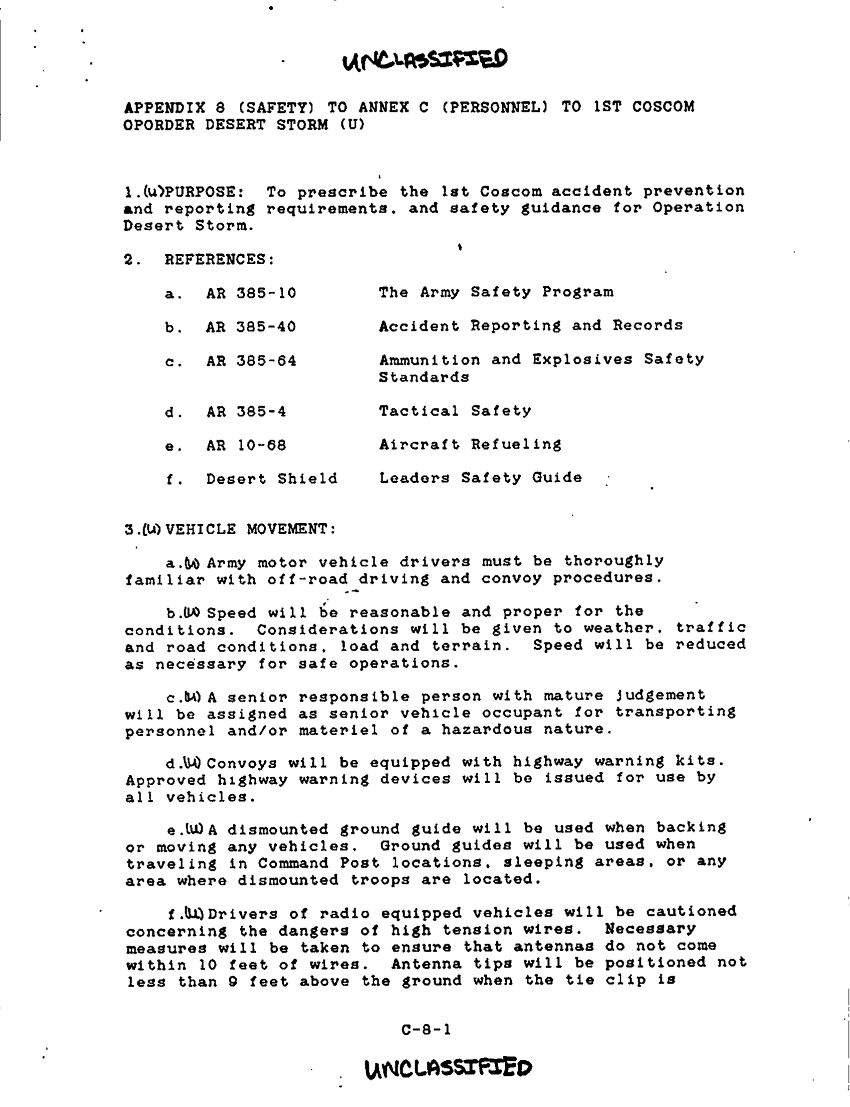 Subject = 1ST COSCOM OPERATION ORDER DESERT STORM