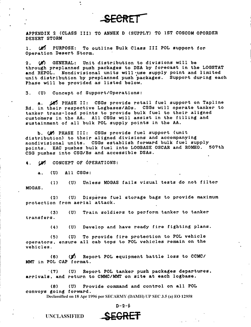 Subject = 1ST COSCOM OPERATION ORDER DESERT STORM