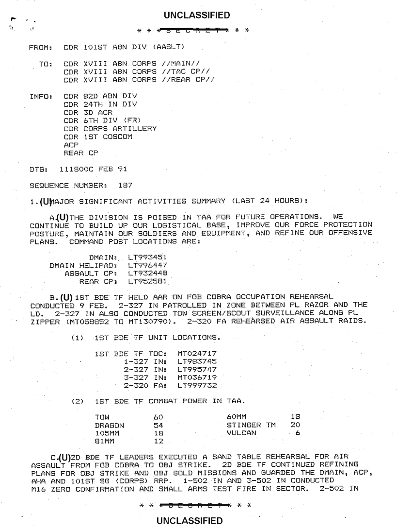 Document 4 f:/Week-18/BX000055/101ST ABN DIV SITREPS FEB 91/significant activities summary 11 feb 91 seq 1:12269616084336