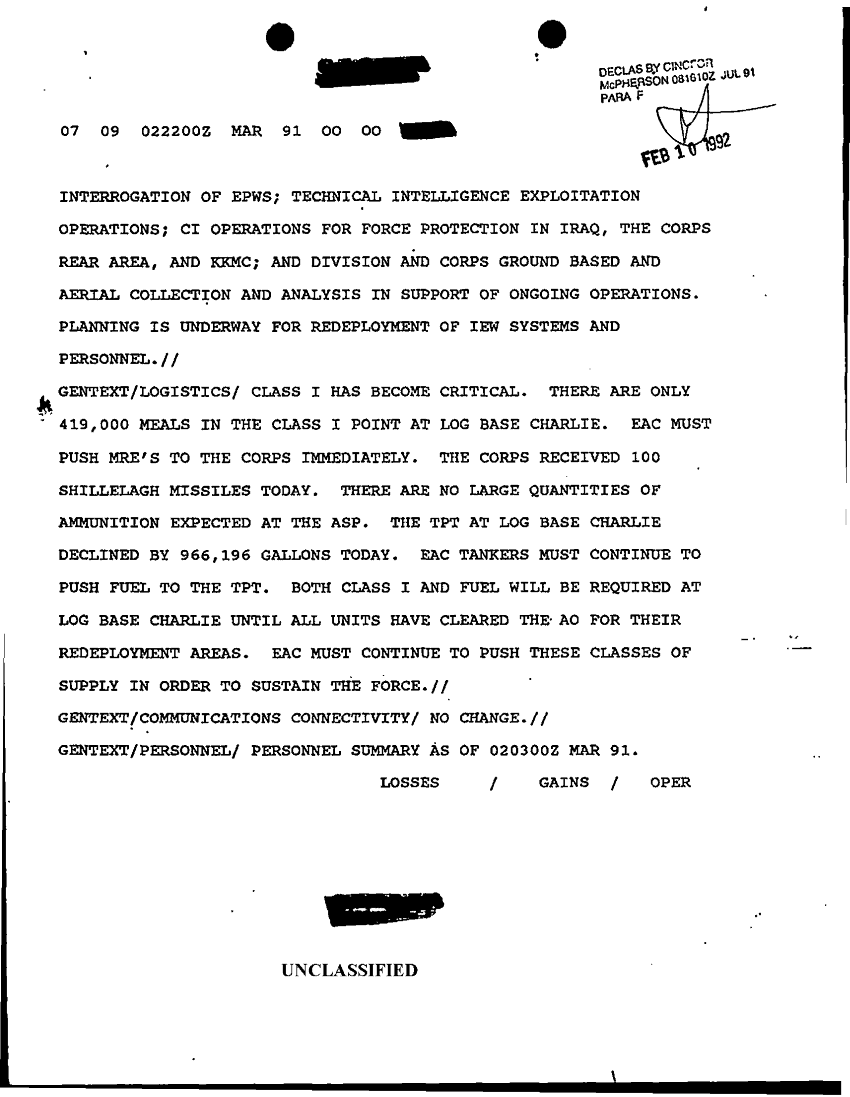 Folder Title = SITUATION REPORTS FEB-MAR 91