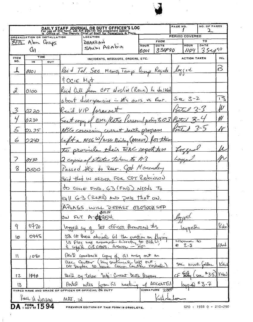 Document 110 f:/Week-15/BX000043/DUTY LOG G1 1-15 SEP 90/daily staff journal or duty officers log:12269616083010