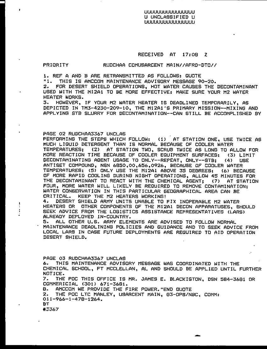 Document 2 f:/Week-29/BX000401/TACTICAL OPERATIONS CENTER LOGS - MSG FILE LOGS 30 SEP 90/m12a6 decontamination apparatus serviceability o:12269616083214