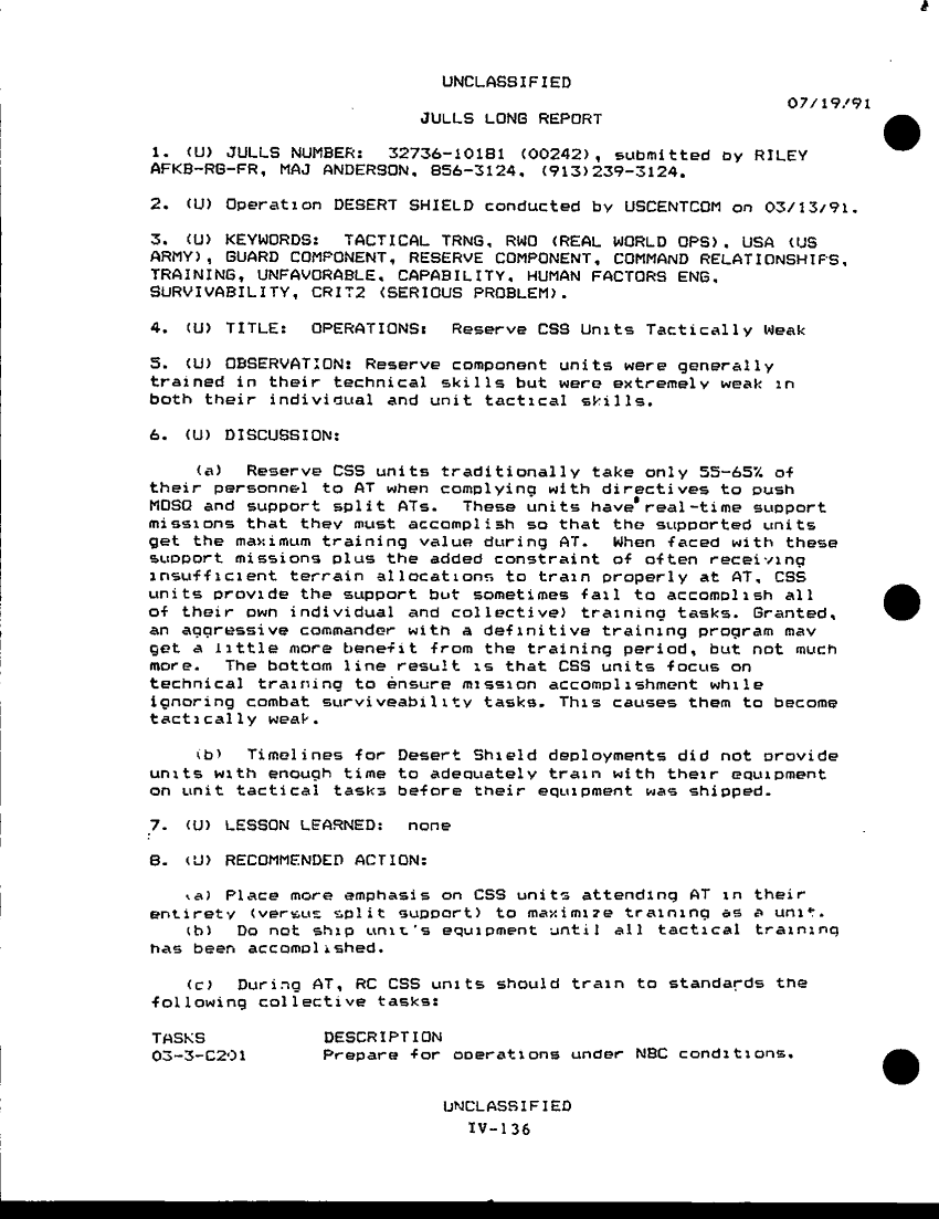 Subject = DESERT SHIELD STORM AFTER ACTION REPORT PHASE 1