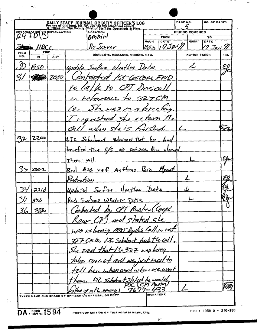 Document 85 f:/Week-22/BX001431/DAILY STAFF JOURNALS 24TH INF JAN MAR 91/daily staff journal:12269616085661