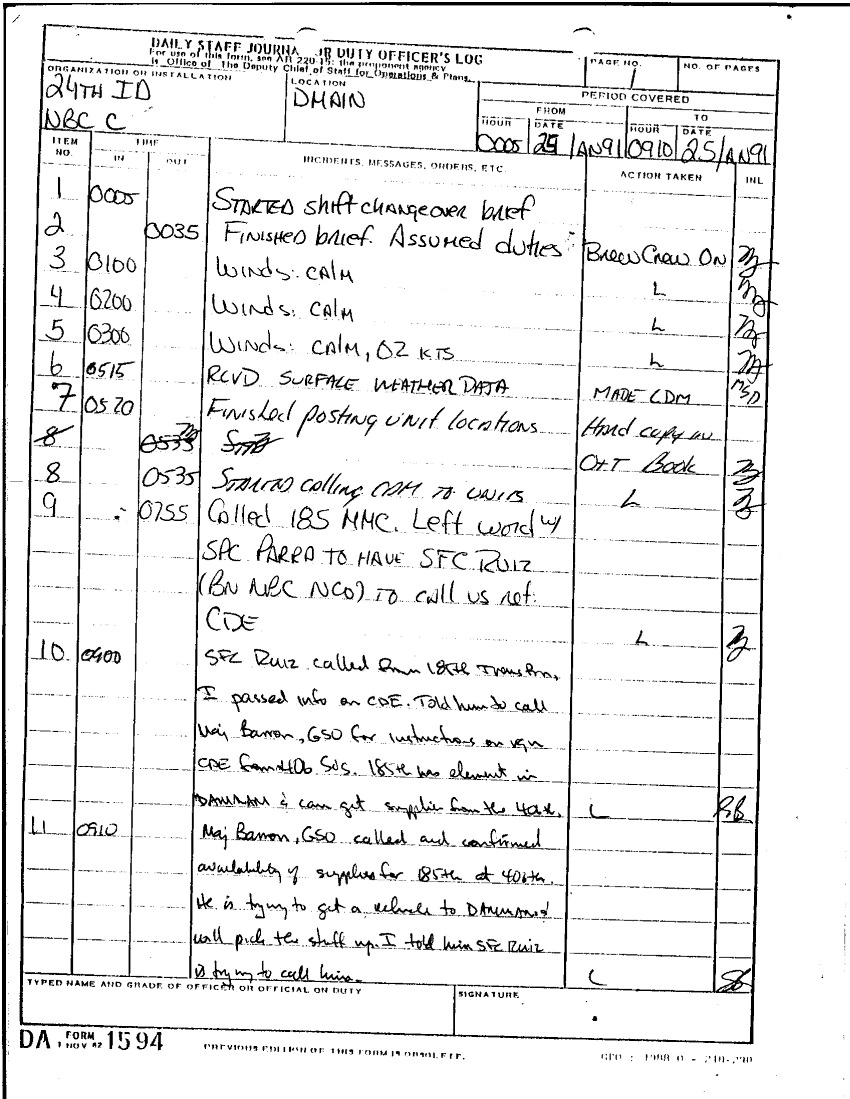 Document 85 f:/Week-22/BX001431/DAILY STAFF JOURNALS 24TH INF JAN MAR 91/daily staff journal:12269616085661