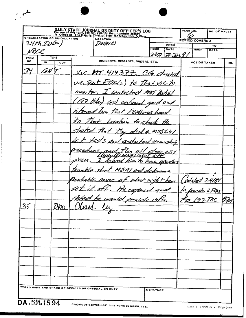 Document 85 f:/Week-22/BX001431/DAILY STAFF JOURNALS 24TH INF JAN MAR 91/daily staff journal:12269616085661