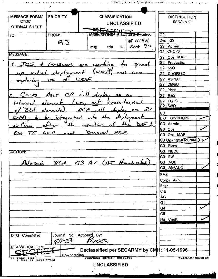 Folder Title = DUTY LOG EOC G3 6 7 AUG 90