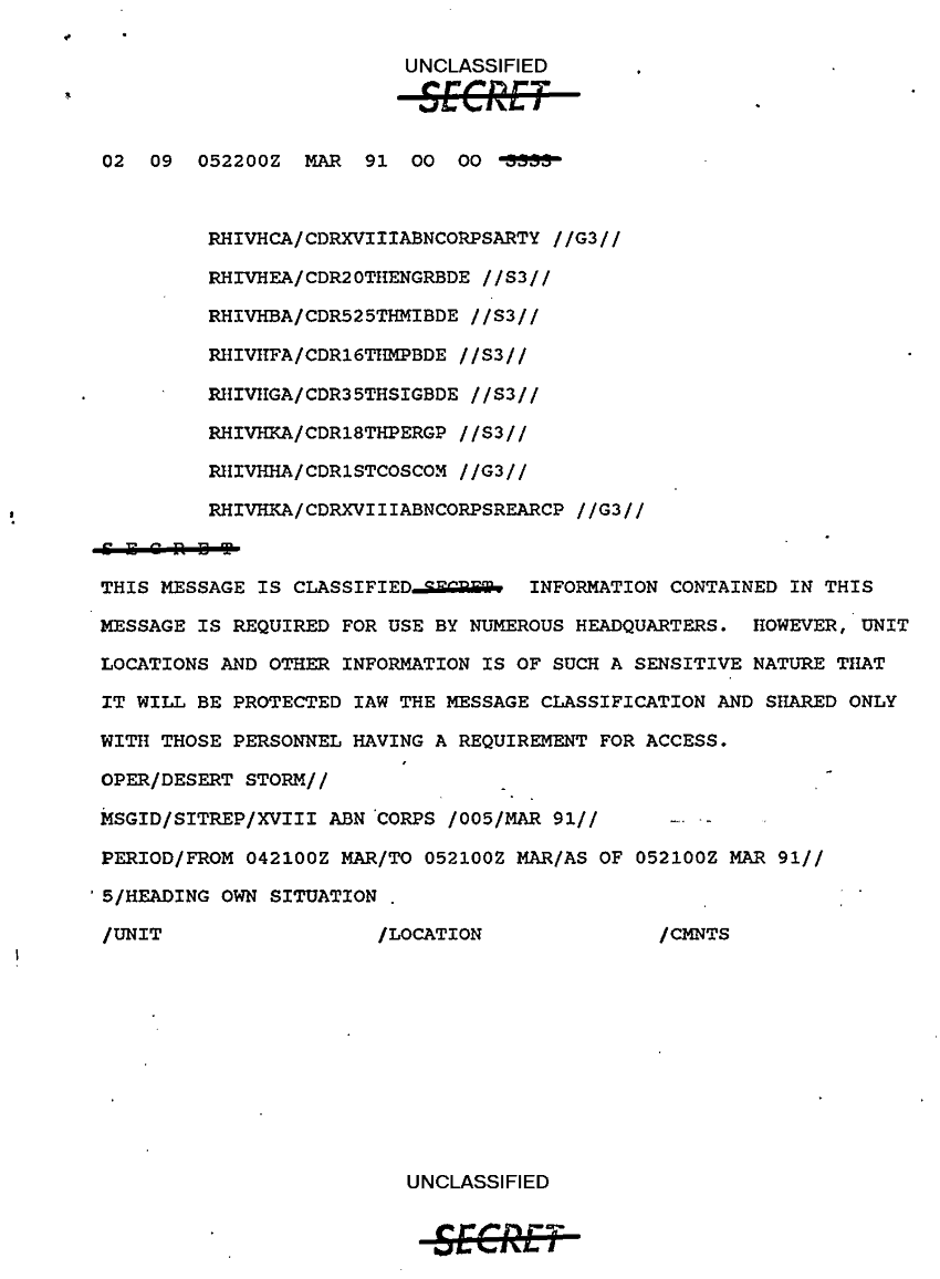 Document 9 f:/Week-10/BX000020/DUTY LOG G3 REAR XVIII ABC MAIN SITREPS MAR 91/unit locations:12269616090376