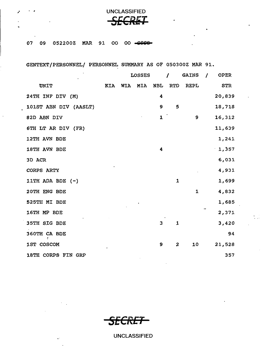 Document 9 f:/Week-10/BX000020/DUTY LOG G3 REAR XVIII ABC MAIN SITREPS MAR 91/unit locations:12269616090376