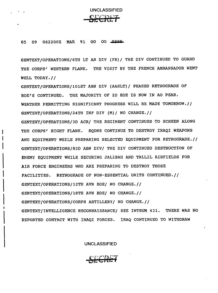 Document 9 f:/Week-10/BX000020/DUTY LOG G3 REAR XVIII ABC MAIN SITREPS MAR 91/unit locations:12269616090477