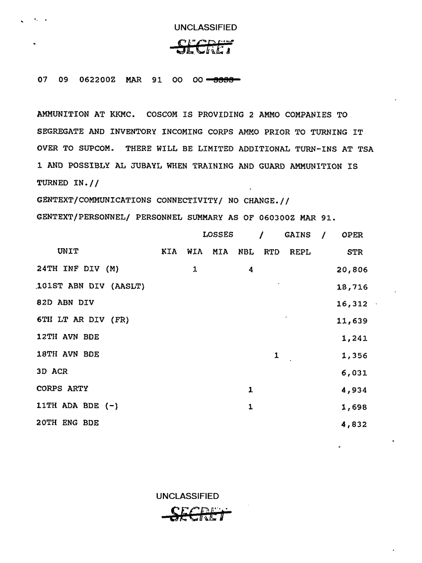 Document 9 f:/Week-10/BX000020/DUTY LOG G3 REAR XVIII ABC MAIN SITREPS MAR 91/unit locations:12269616090477