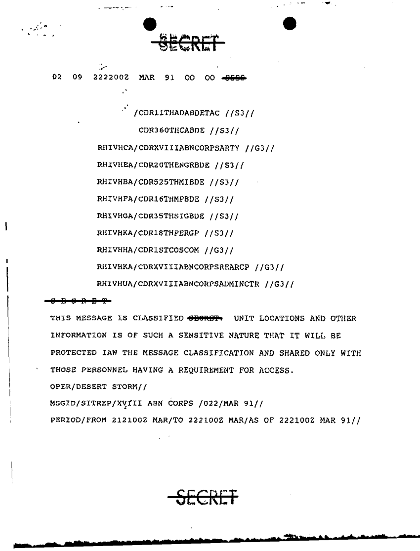 Document 9 f:/Week-10/BX000020/DUTY LOG G3 REAR XVIII ABC MAIN SITREPS CONT MAR 91/sitrep 22 march 91:12269616085458
