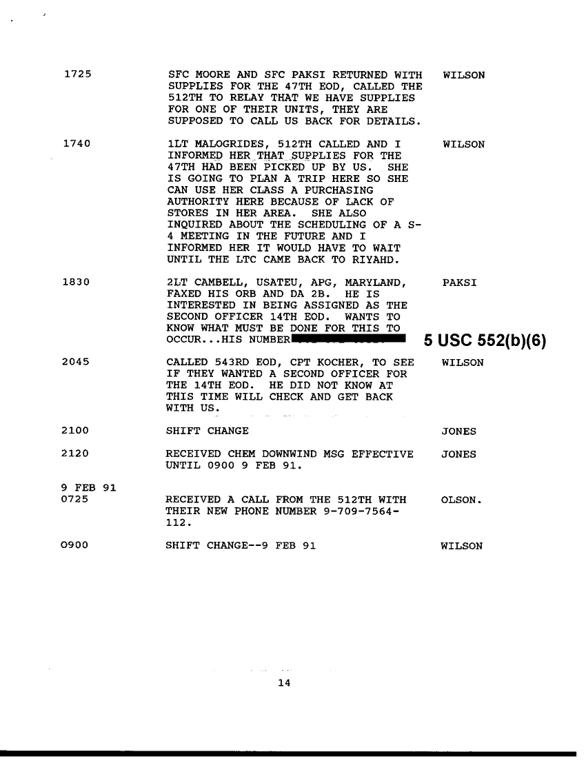 Document 85 f:/Week-42/BX005554/ARMY EOD IN DESERT STORM VOL 1 1ST EOD GROUP/1st eod group daily journal 1 15 february 1:12269616090375