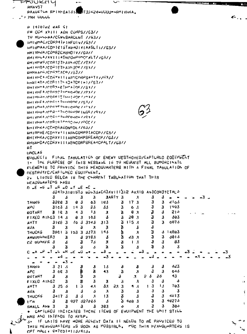 Document 1 f:/Week-10/BX000020/DUTY LOG G3 REAR INCOMING MESSAGES 20 FEB - 14 MAR 91/final tabulation of enemy destroyed captured equ:0102971552517
