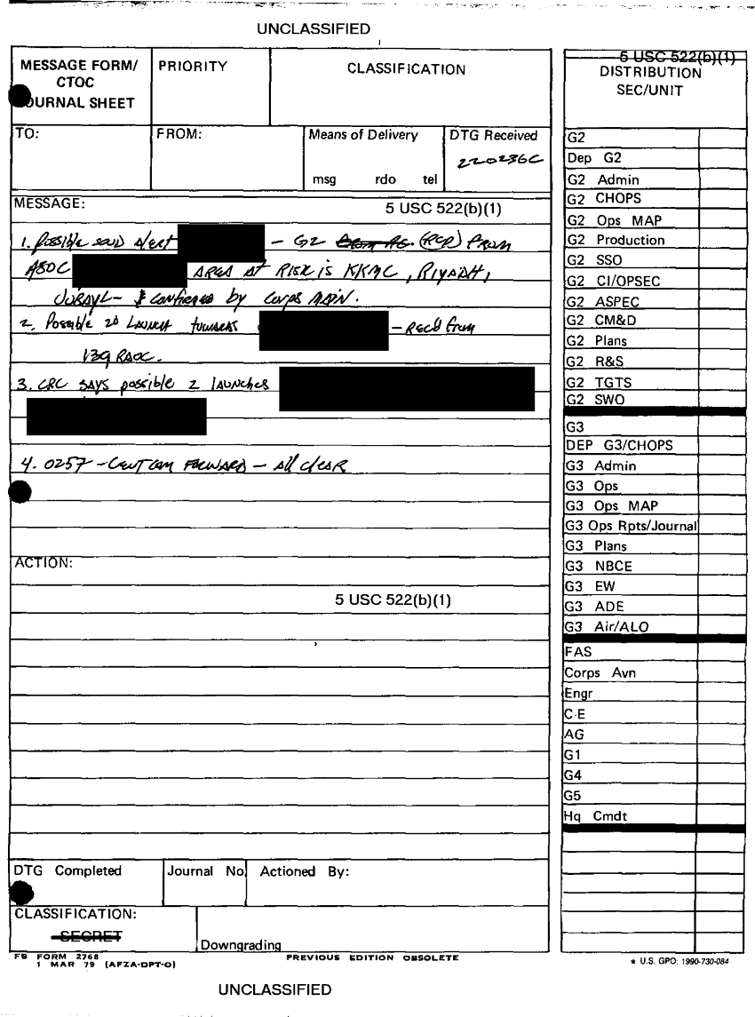Document 5 f:/Week-09/BX000019/DUTY LOG G3 REAR 22 FEB 91/message form:01029715525515