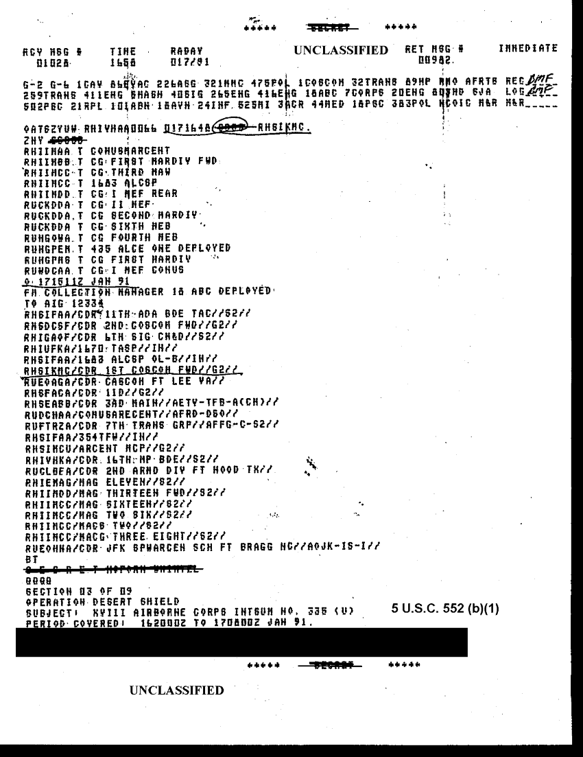 Document 29 f:/Week-35/BX005205/XVIII ABN CORPS INTSUM SITREPS-JAN 91-1/xviii airborne corps intsum no 338 17 jan 91:010297184314125