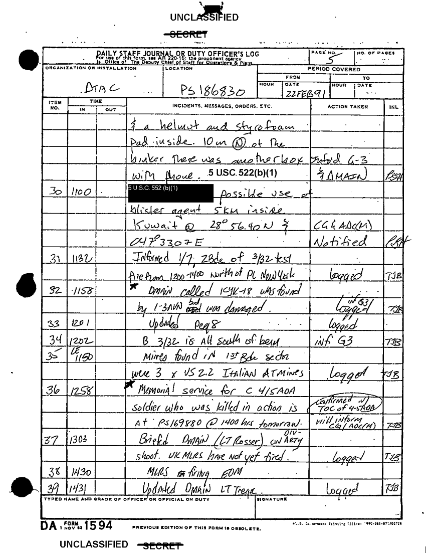 Document 17 f:/Week-49/BX001105/DTAC DUTY LOGS FEB-MAR 91/daily staff journal or duty officers log dtac :010297184328153