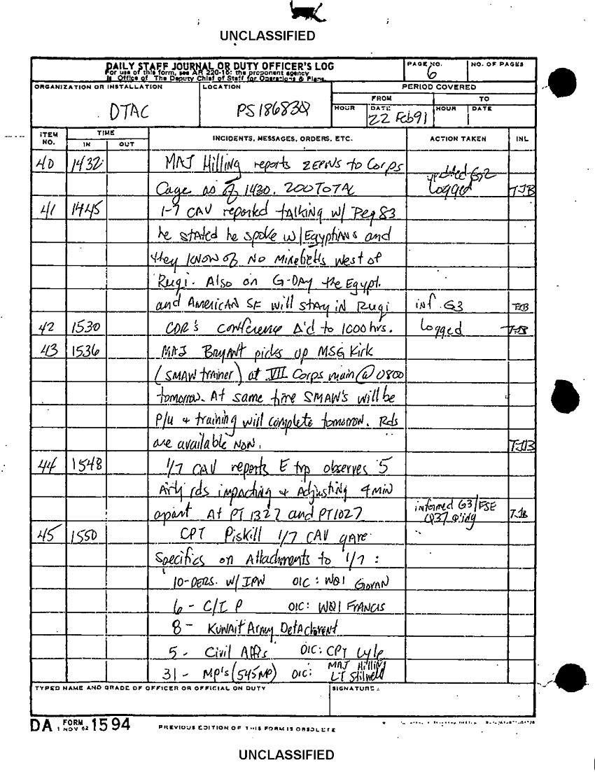 Document 17 f:/Week-49/BX001105/DTAC DUTY LOGS FEB-MAR 91/daily staff journal or duty officers log dtac :010297184328153